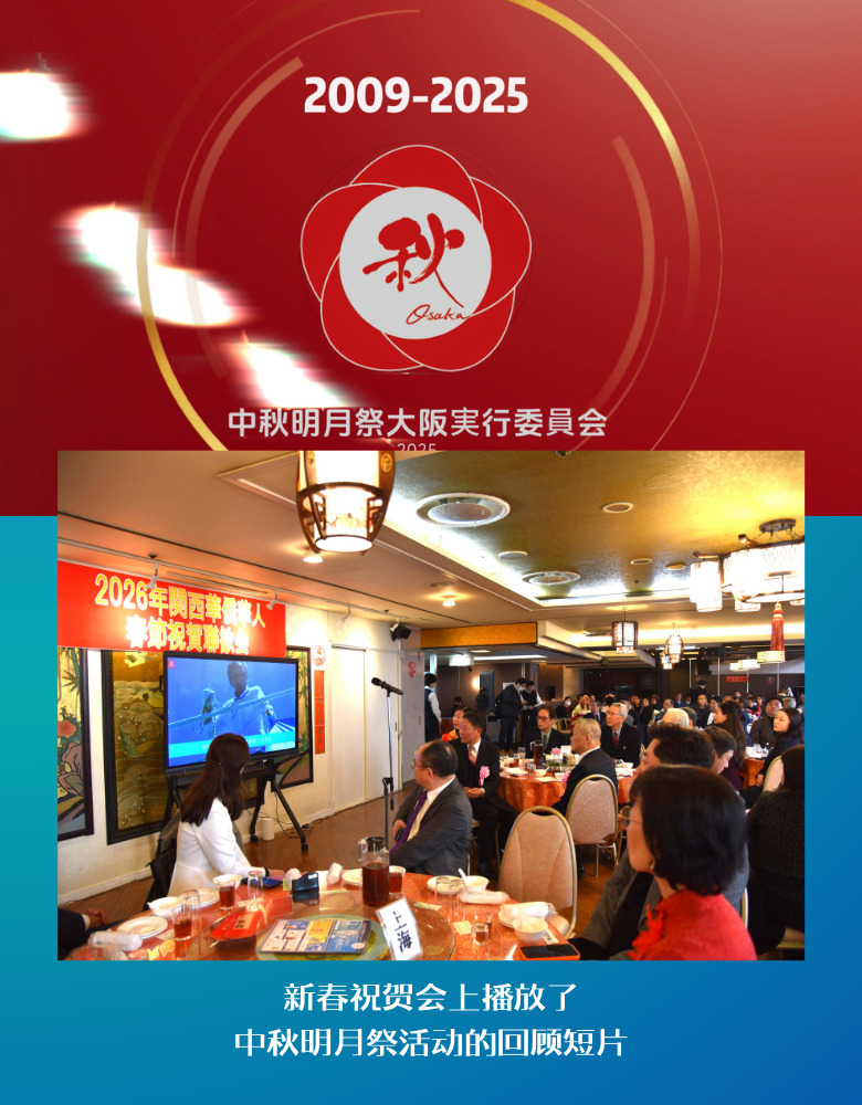 2026年2月15日,由大阪华侨总会、神户华侨总会、京都华侨总会、西日本华侨华人协会共同组办的温暖迎春、共庆中国年新春联欢会在中华料理枫林阁举行,两百多位华侨华人欢聚一堂,过了一个热热闹闹、喜庆祥和的春节。